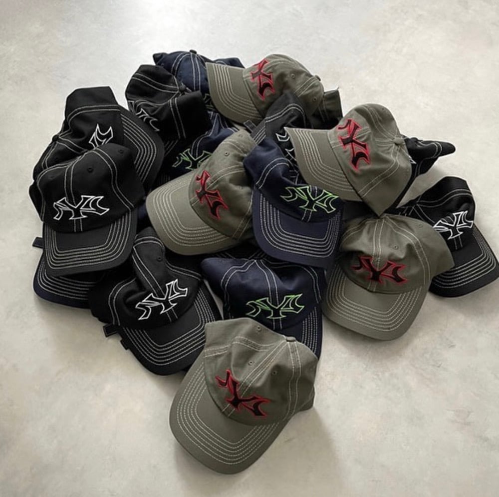 Contrast stitch with front embroidery